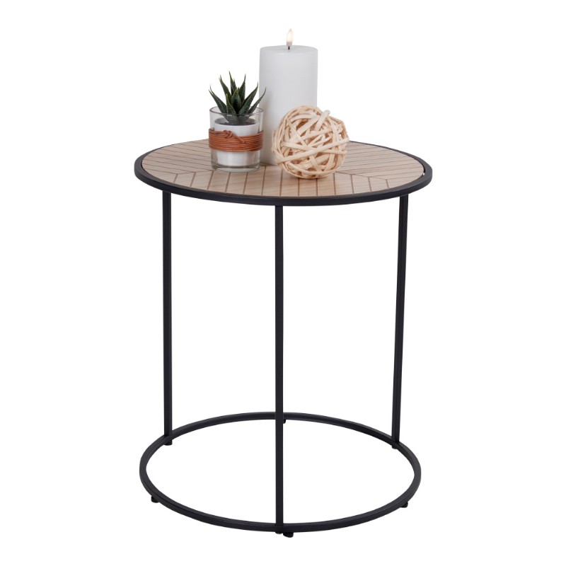 Round sidetable in black with top in paulownia veneer