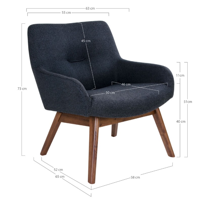 London lounge chair in dark grey with walnut legs