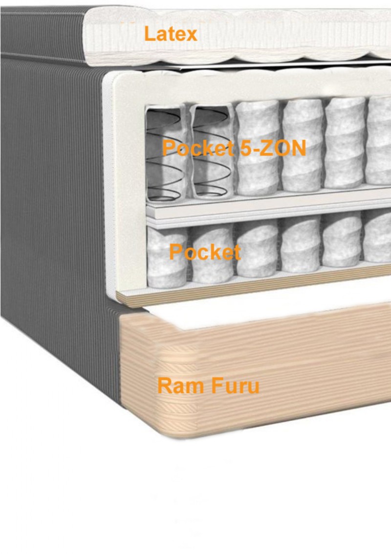 Ramsäng med undre kärna av Pocket och en övre kärna av 5-zons pocketresår som är indelad efter kroppen. Detta gör att du får stöd och avlastning på rätt ställen och minskar risken för tryck som gör att du vaknar. Bäddmadrassen är 10 cm tjock med en kärna av Latex, svept med mjuk vadd. 10 års garanti mot ram- och fjäderbrott. Priset avser inkl. bäddmadrass och 23 cm Svarta konade ben,