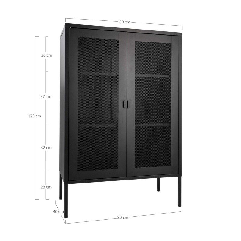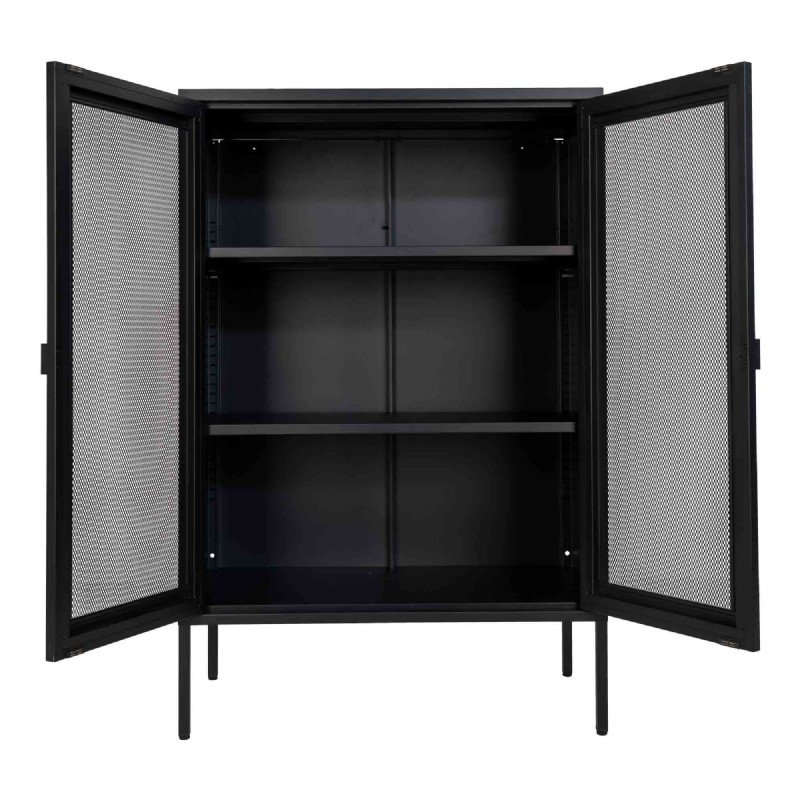 Display cabinet in black with mesh door