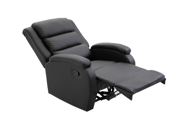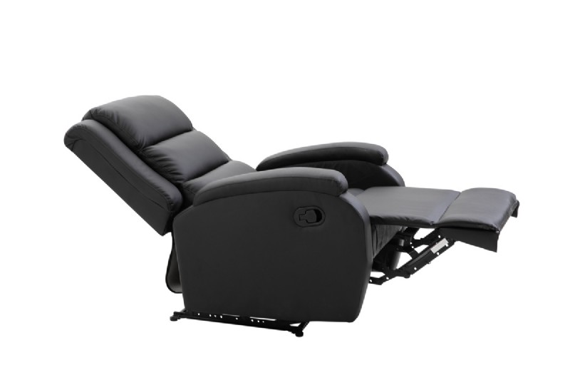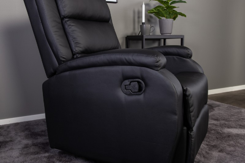 Återskapa den lyxiga biokänslan i ditt hem med vår reclinerfåtölj i serien Bio. Den här fåtöljen ger en elegant tyngd åt vardagsrummet med sin robusta design och mjuka utsida. Den tidlösa svarta klädseln är i praktisk PU. Med sin smarta reclinerfunktion