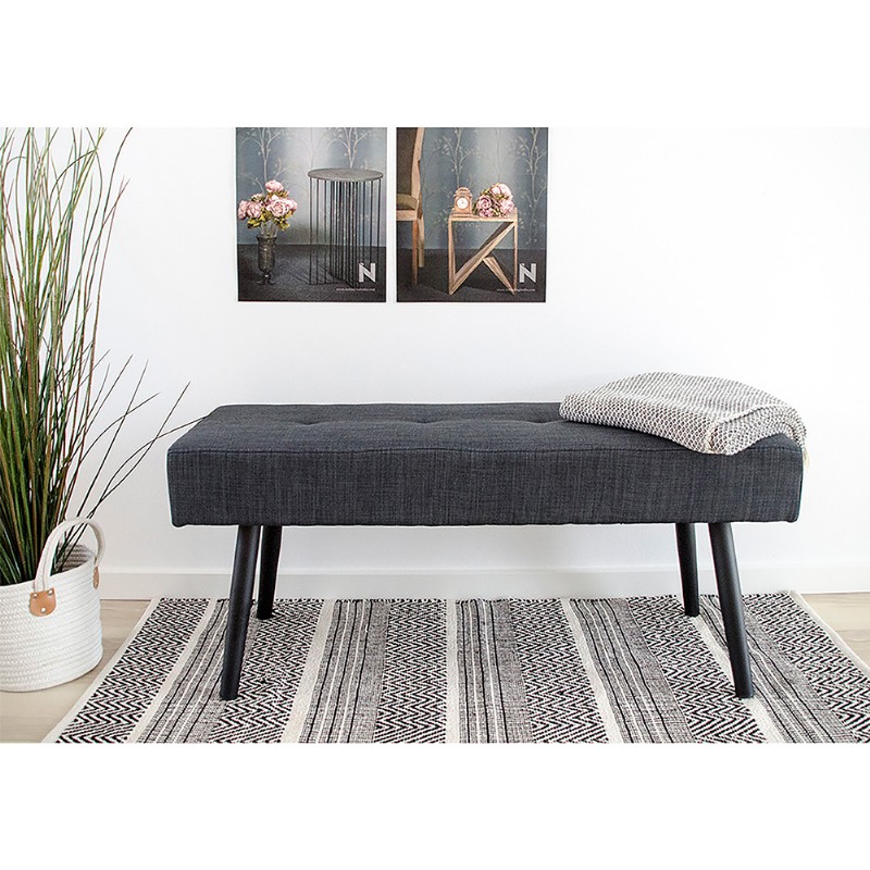 Bench in dark grey fabric with black legs